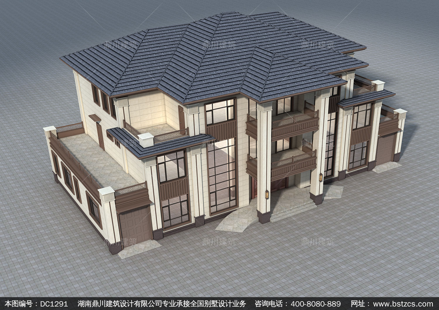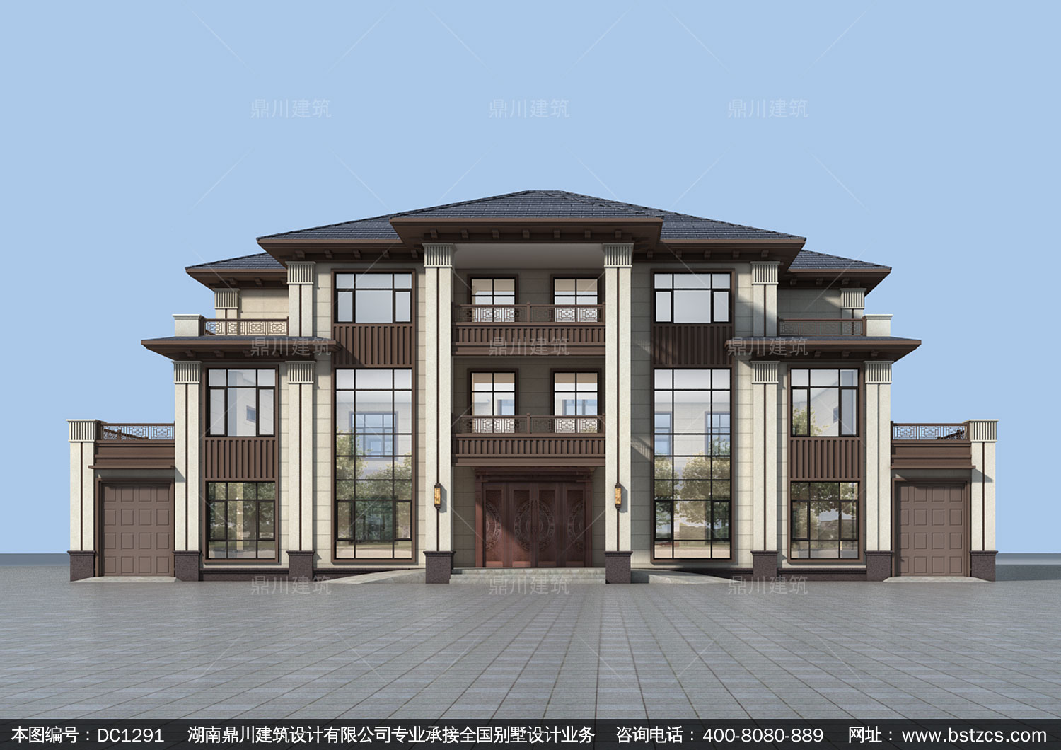 新中式三層雙拼共堂屋別墅施工圖紙及效果圖_農(nóng)村自建別墅設(shè)計(jì),鼎川建筑