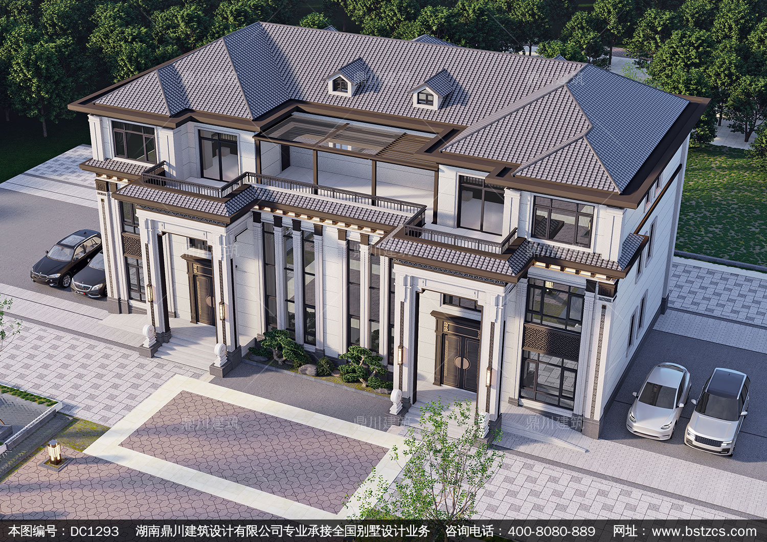 新中式三層兄弟雙拼別墅施工圖紙及效果圖_農村自建別墅設計,鼎川建筑