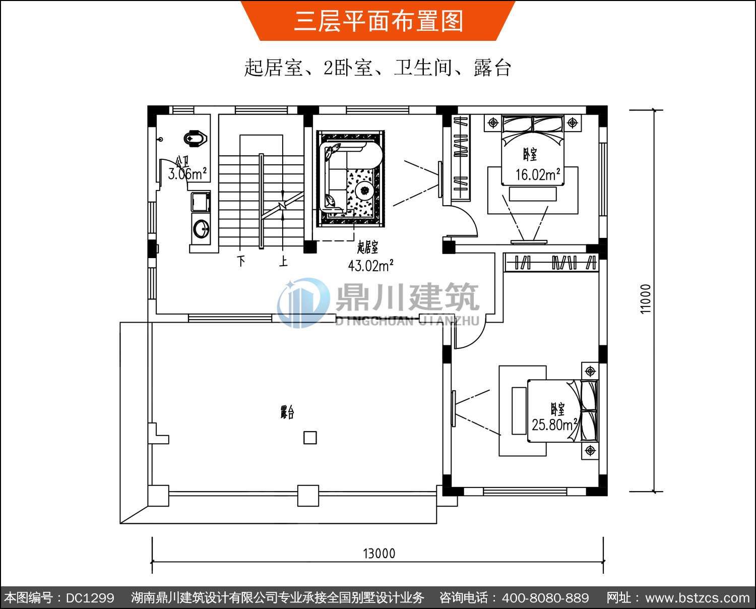 | 編號: DC1299 | 層數: 三層 | 結構形式: 磚混結構 | 主體造價: 45-50萬 |