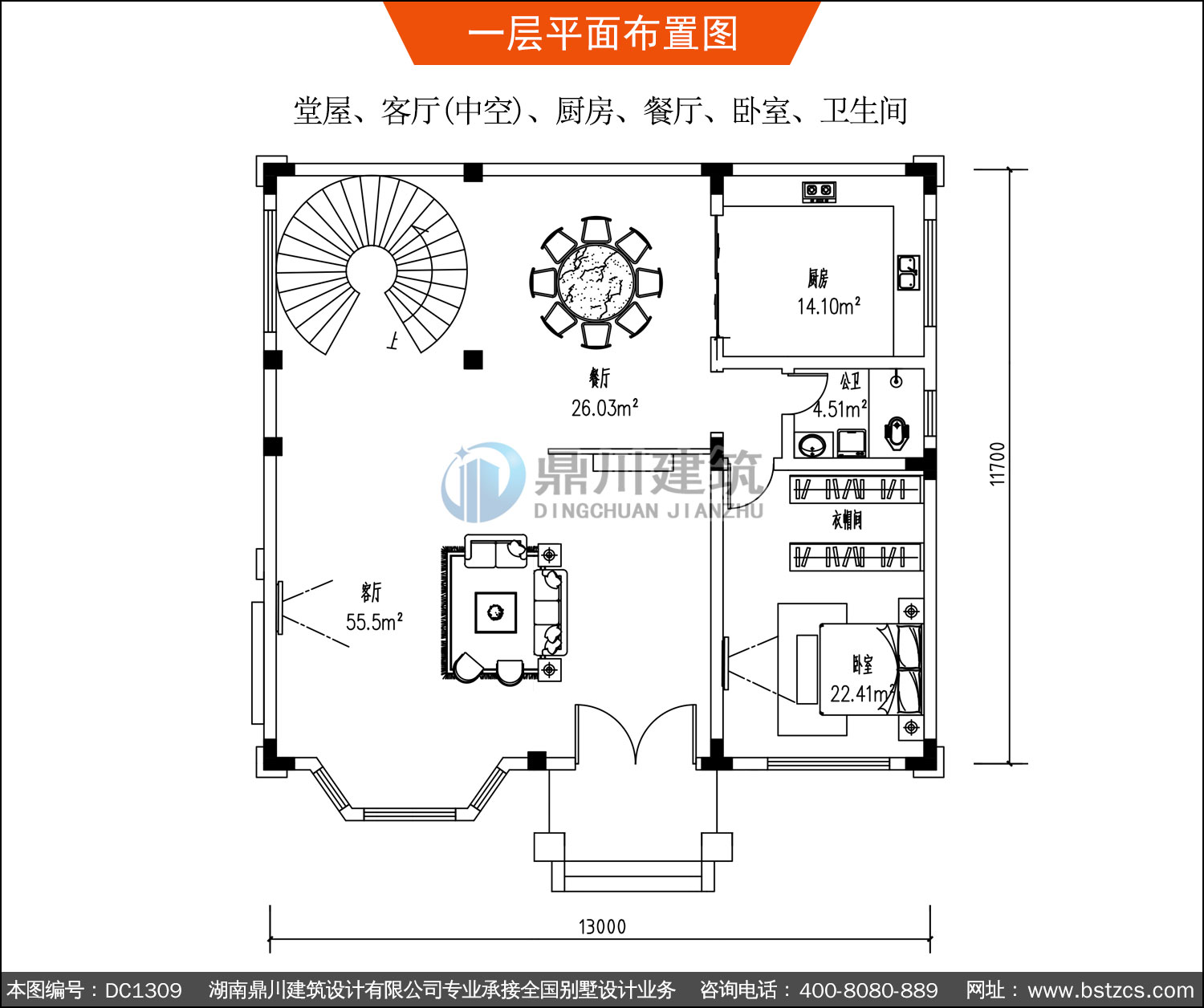 | 一 層: | 堂屋、客廳(中空)、廚房、餐廳、臥室、衛生間 | |||