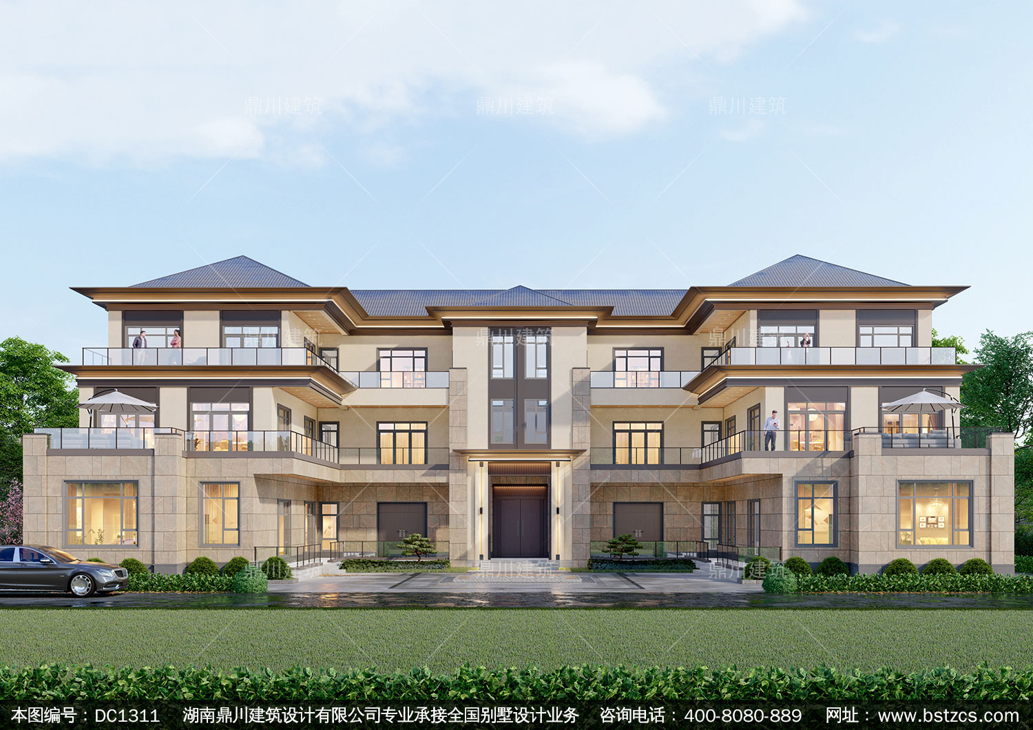 新中式三層兄弟雙拼別墅施工圖紙及效果圖_農村自建別墅設計,鼎