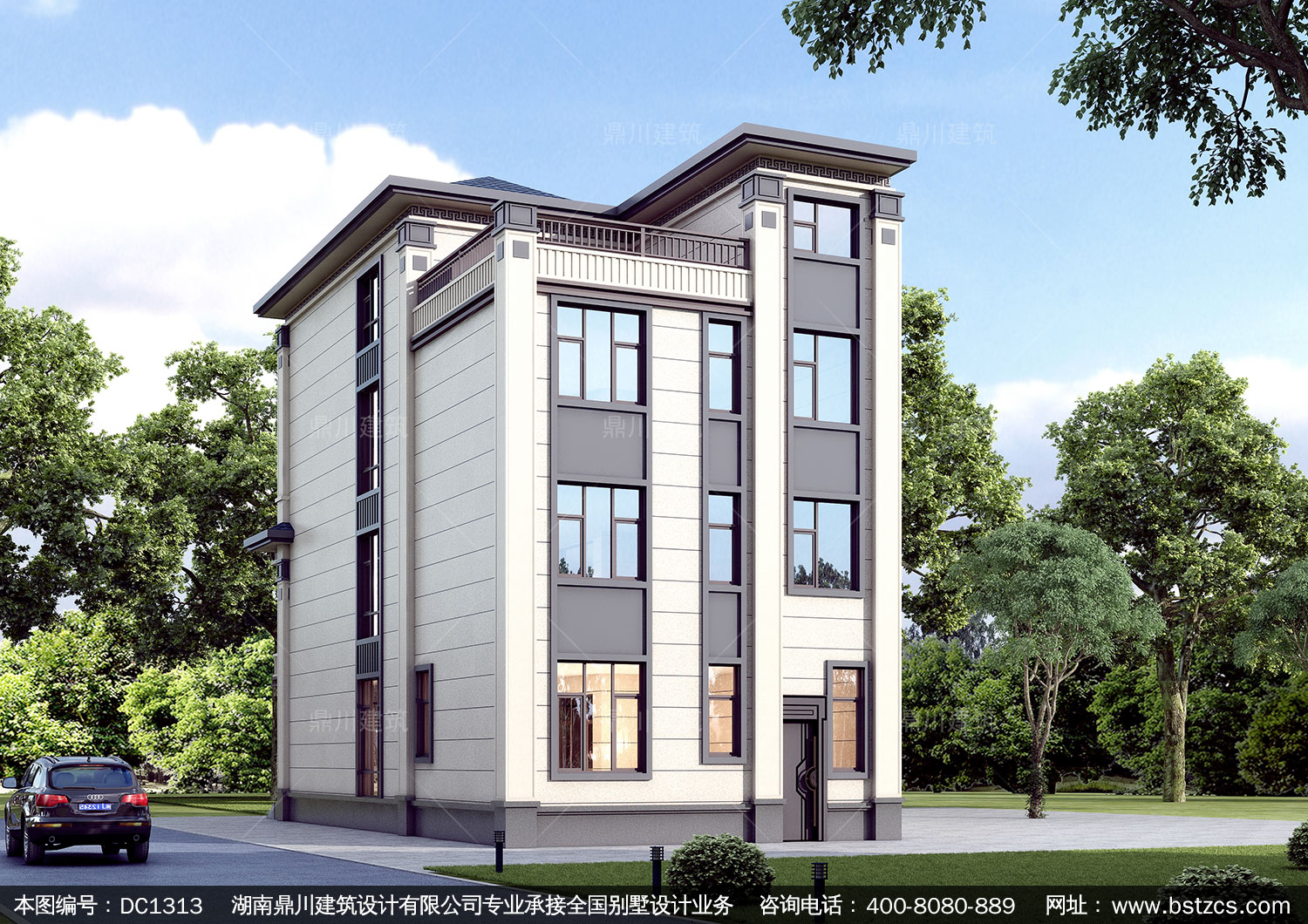 現代四層帶商鋪別墅圖紙及效果圖_新農村自建別墅設計,鼎川建筑