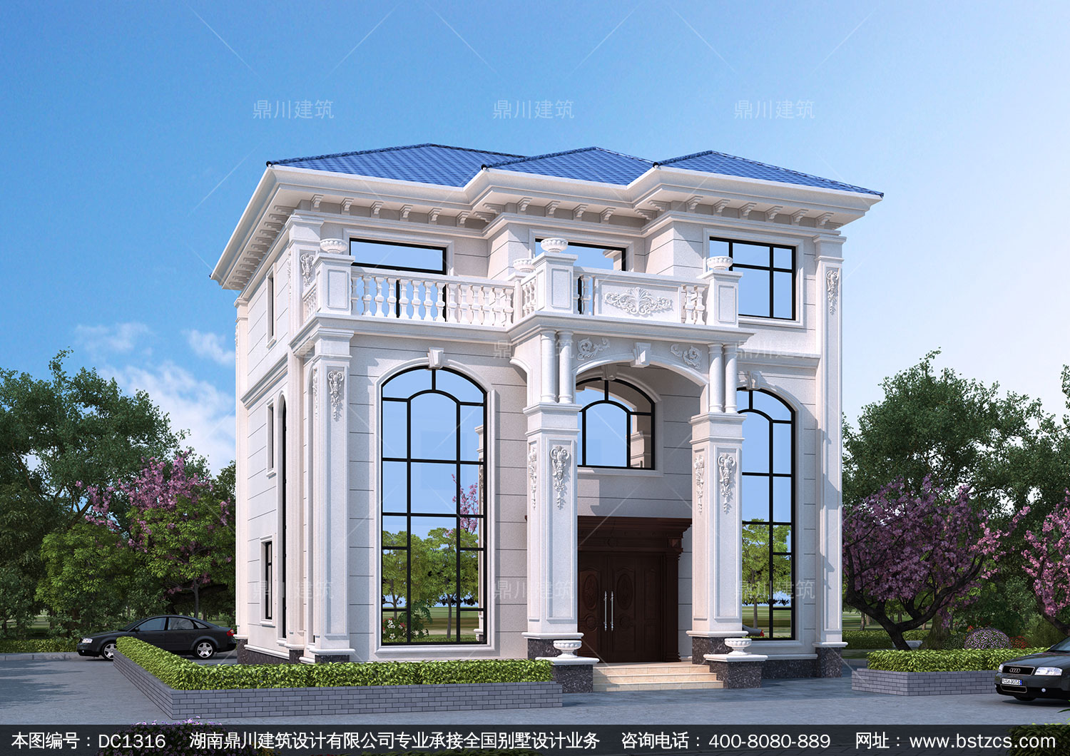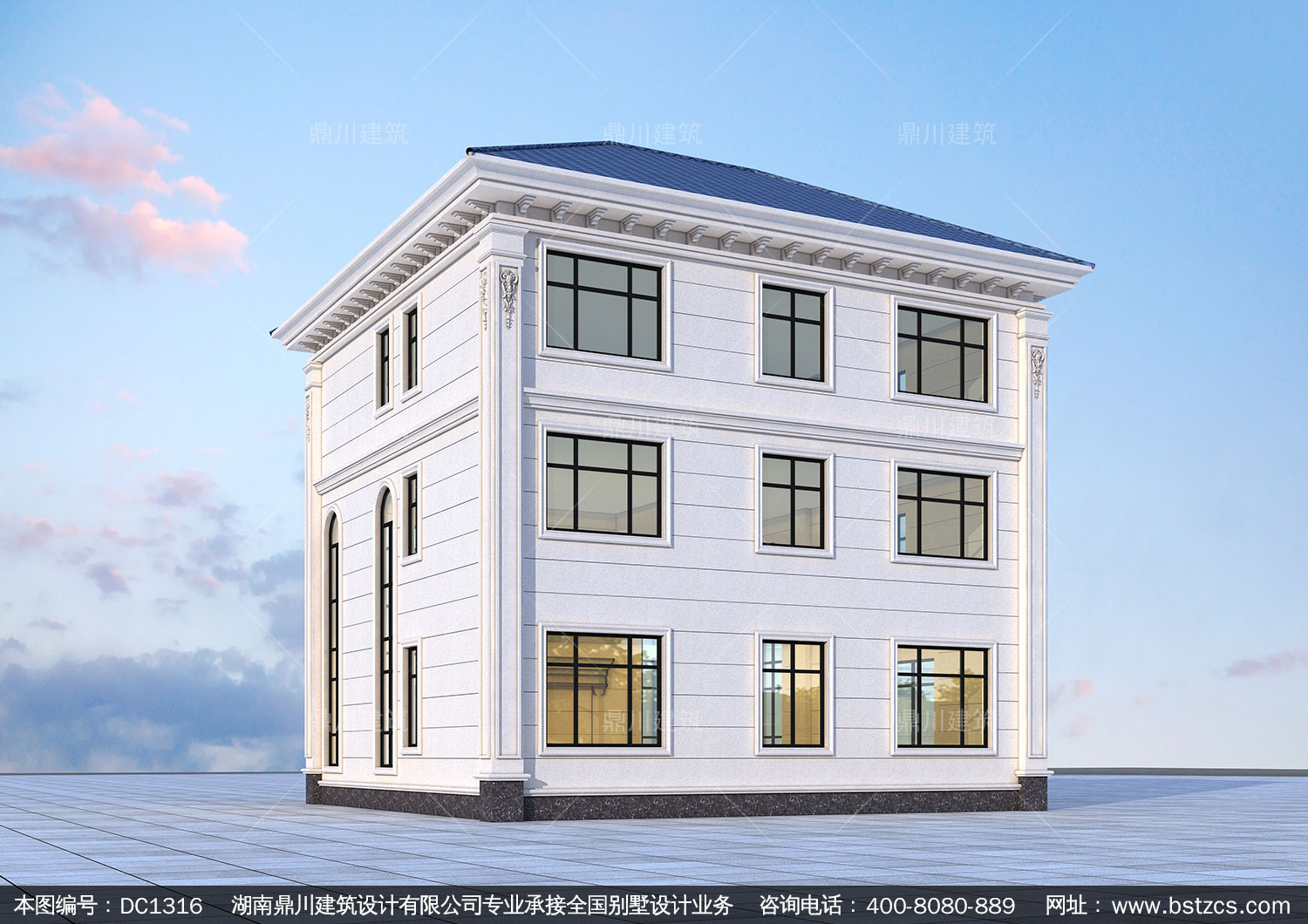 新農(nóng)村歐式三層帶露臺別墅圖紙及效果圖_鄉(xiāng)村自建房設計,鼎川建