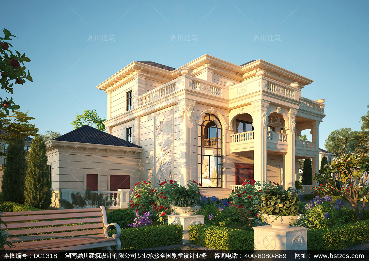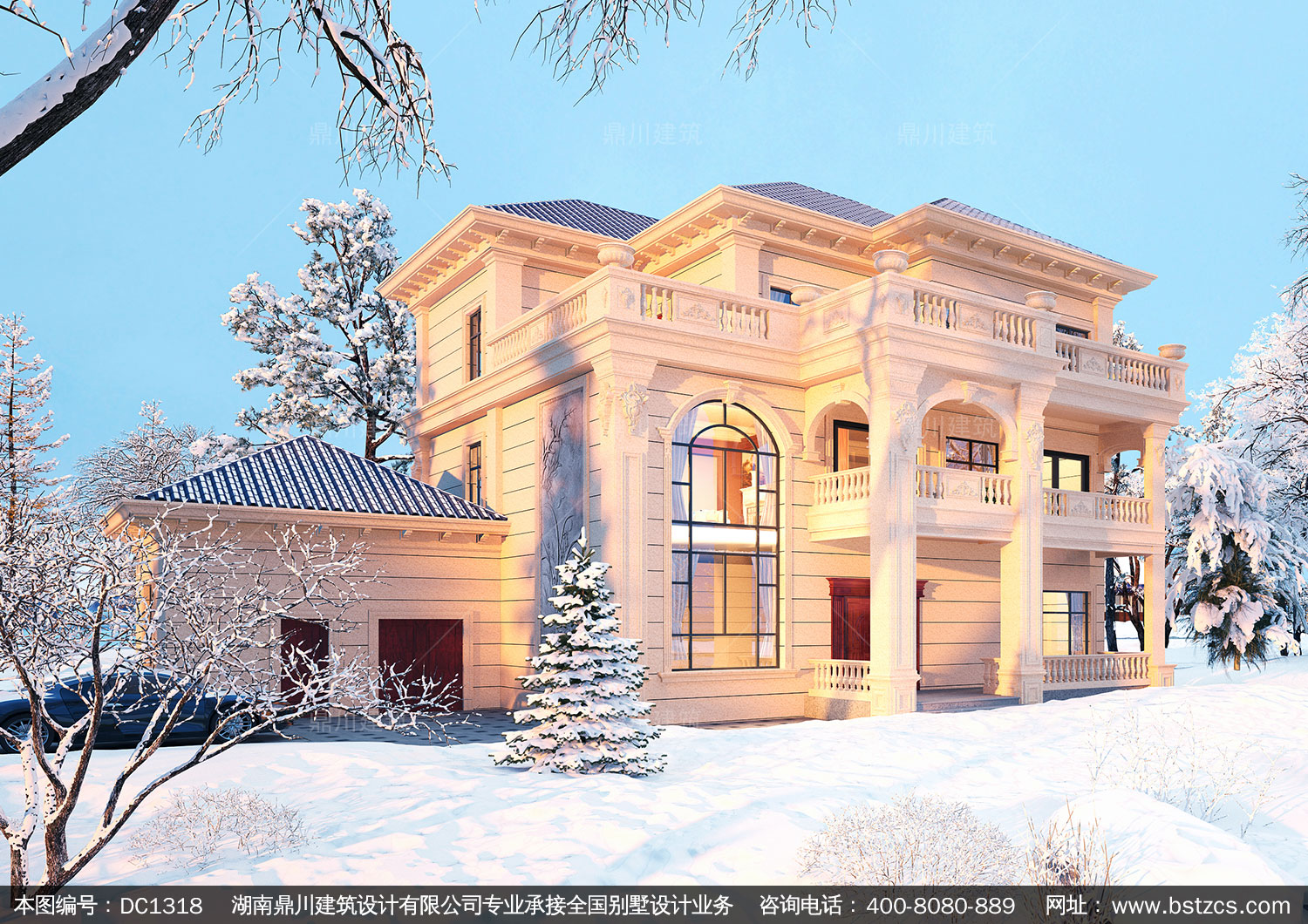 歐式三層帶車庫別墅施工圖紙及效果圖_農村自建別墅設計,鼎川建
