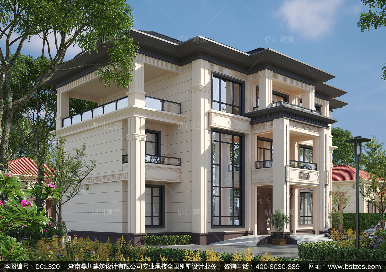 新中式三層復式別墅施工圖紙及效果圖_農村自建別墅設計,鼎川建