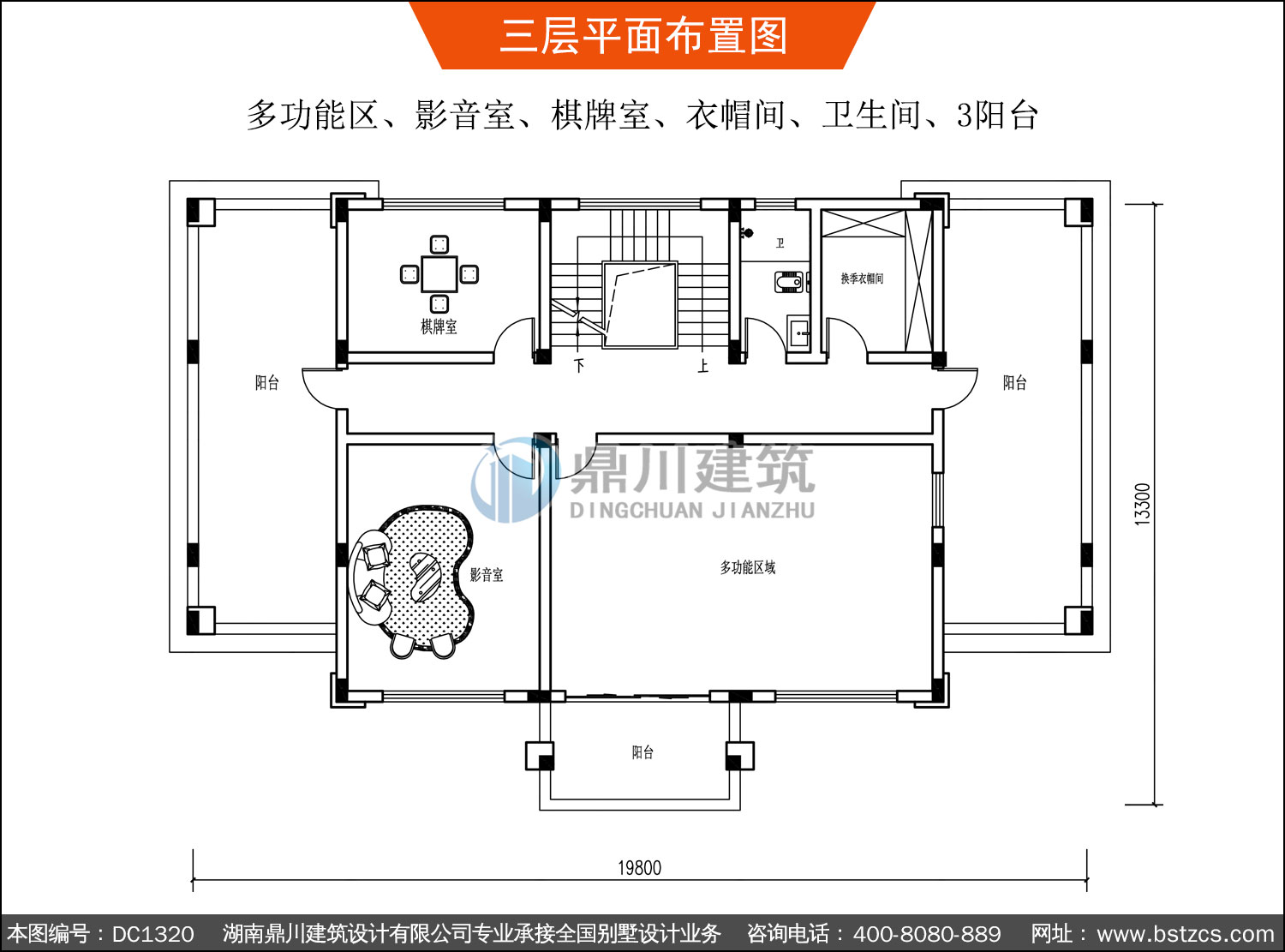 | 三 層: | 多功能區、影音室、棋牌室、衣帽間、衛生間、3陽臺 | |||