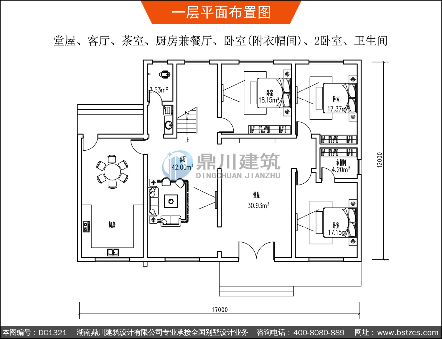 | 一 層: | 堂屋、客廳、茶室、廚房兼餐廳、臥室(附衣帽間)、2臥室、衛生間 | |||