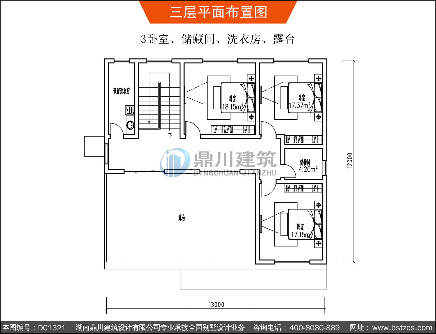 現代三層平屋頂別墅設計圖紙及效果圖_新農村自建別墅,鼎川建筑