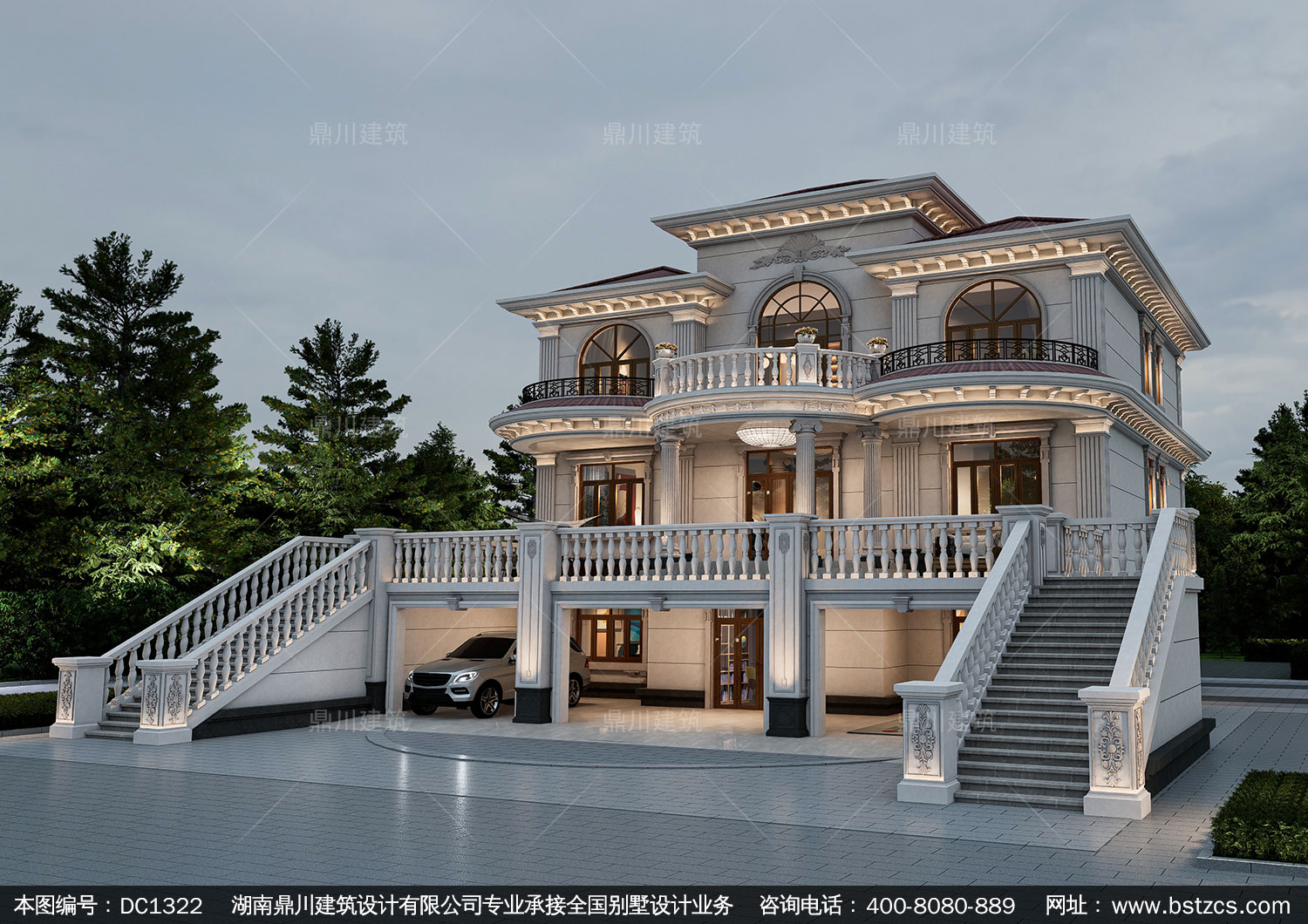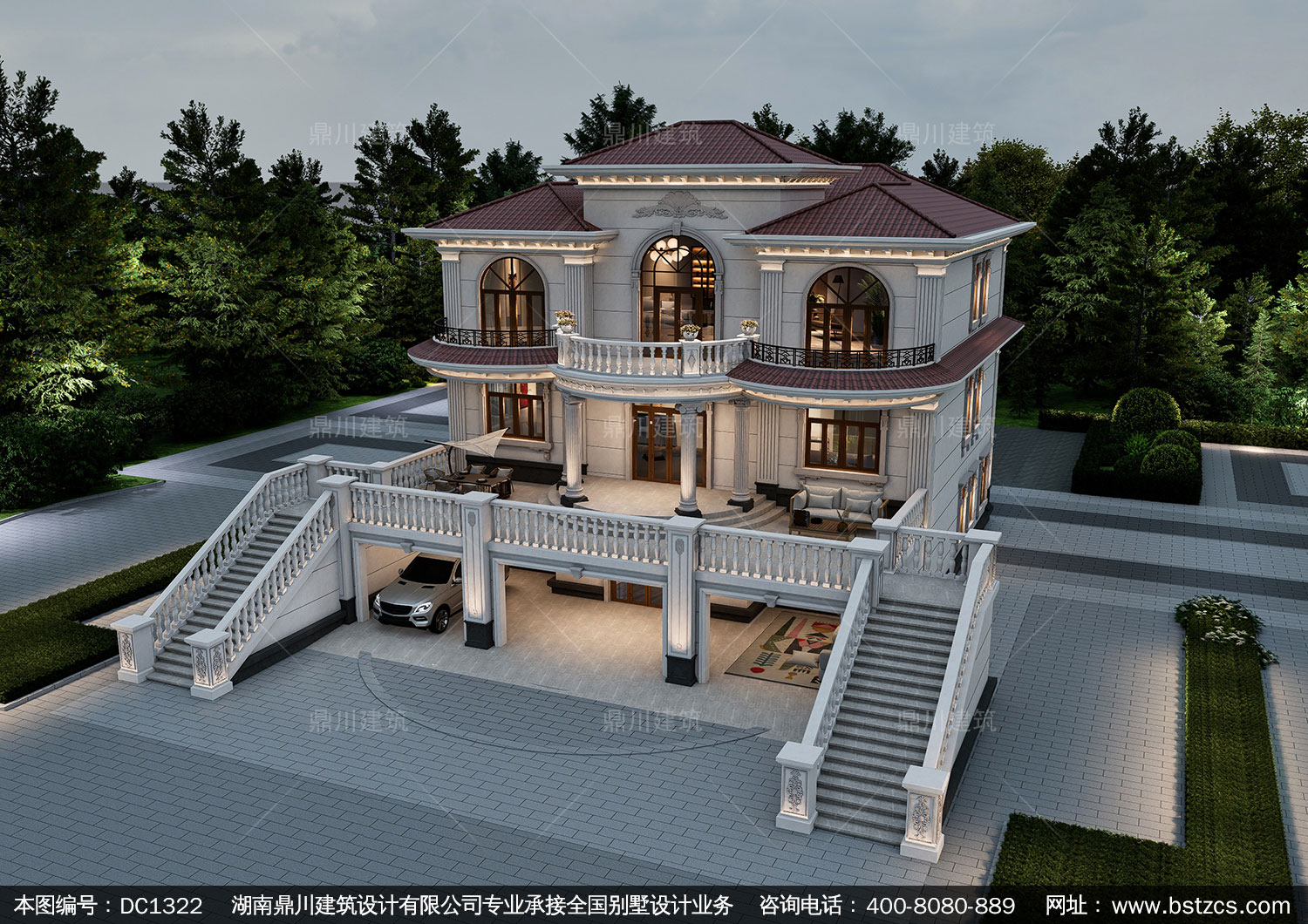 歐式三層帶架空層別墅圖紙及效果圖_農村自建別墅設計,鼎川建筑