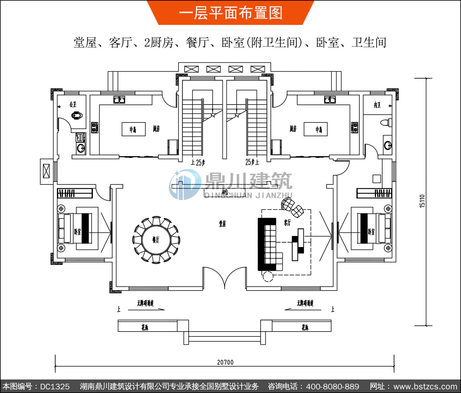 | 一 層: | 堂屋、客廳、2廚房、餐廳、臥室(附衛(wèi)生間)、臥室、衛(wèi)生間 | |||