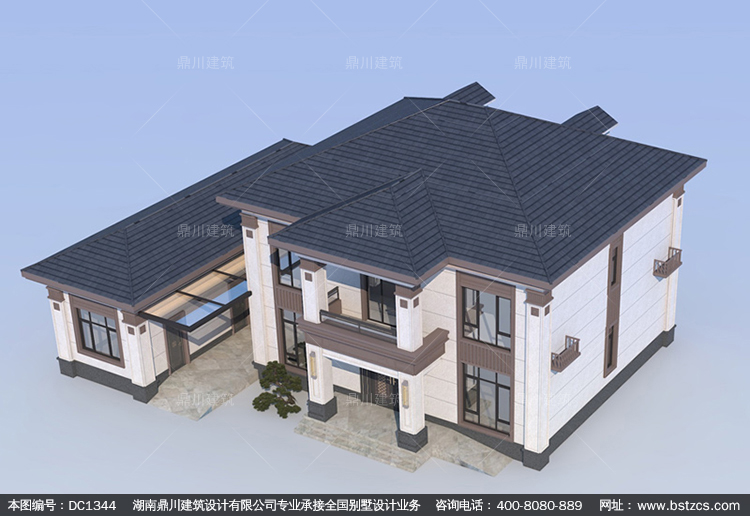 新中式二層帶柴火房別墅圖紙及效果圖_農村自建別墅設計,鼎川建