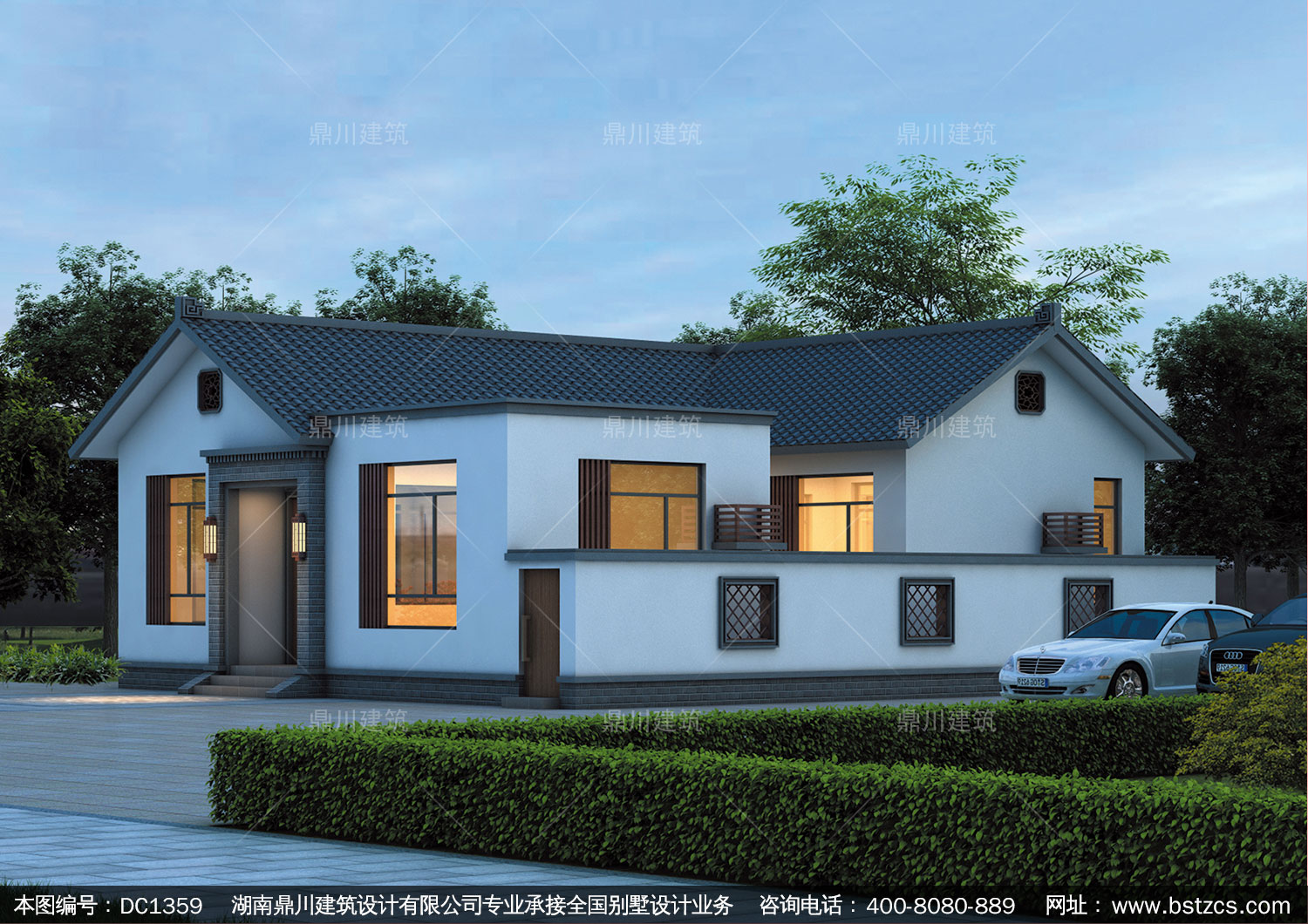 中式一層別墅效果圖及施工圖紙_農村自建別墅設計,鼎川建筑