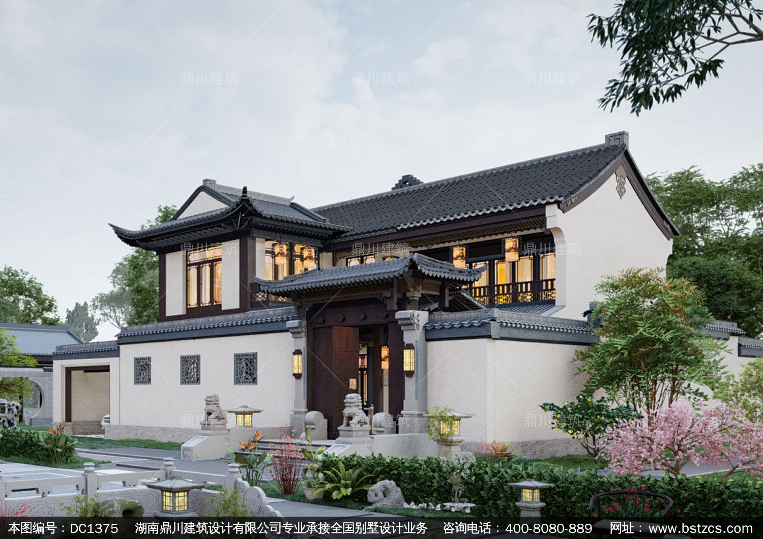 中式二層別墅效果圖及施工圖紙_農村自建別墅設計,鼎川建筑