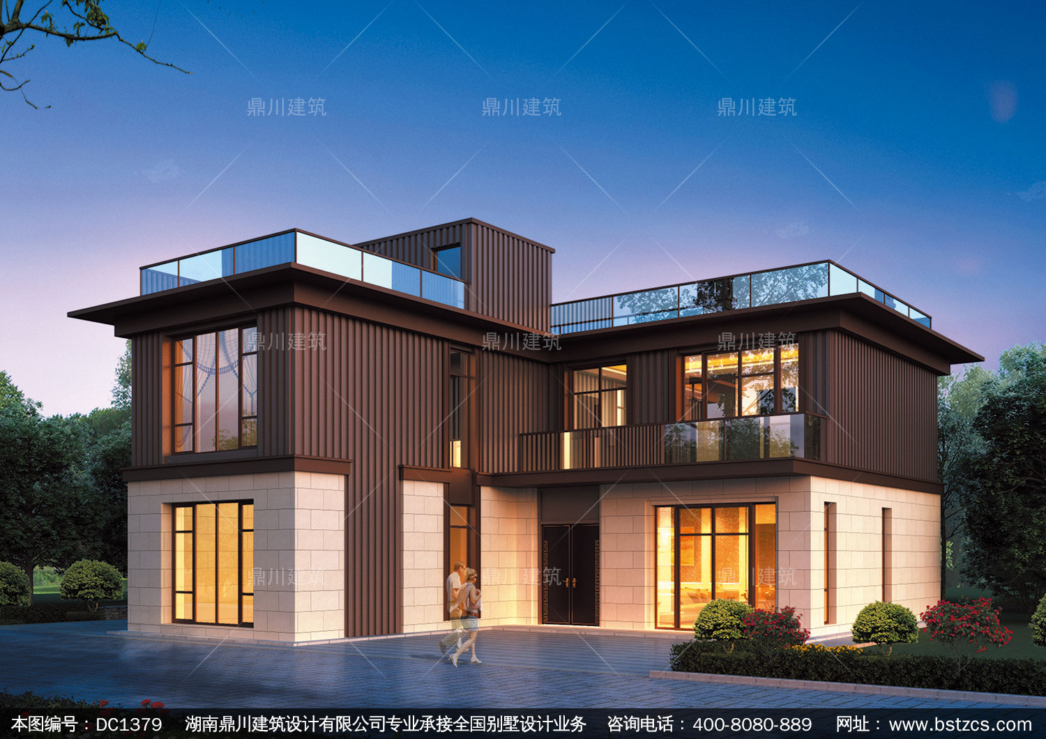 現代二層平屋頂別墅施工圖及效果圖_新農村自建別墅設計,鼎川建