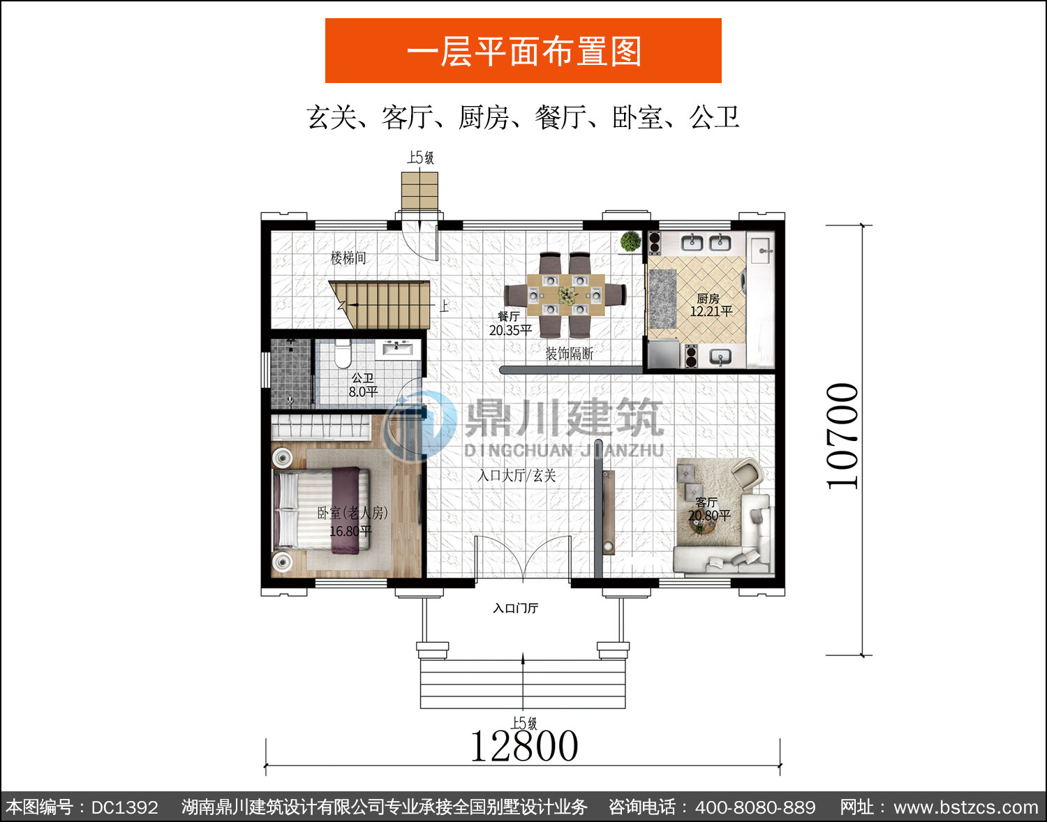 | 開間: 12.8米 | 進深: 10.7米 | 占地面積: 129.63平方米 | 建筑面積: 348.45平方米 |