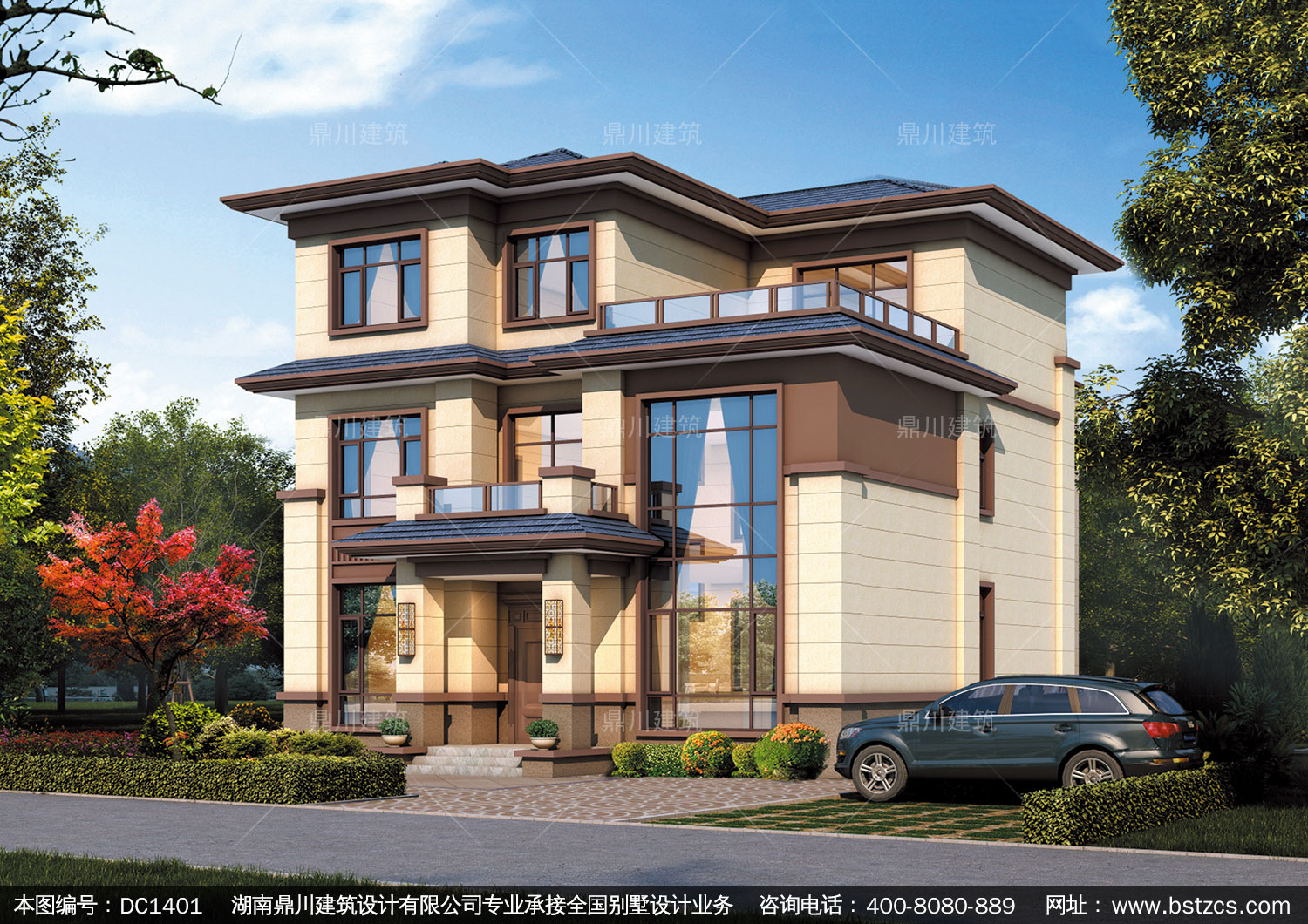新中式三層別墅效果圖及施工圖紙_農村自建別墅設計,鼎川建筑