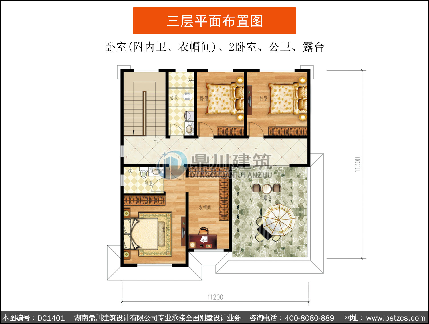 新中式三層復式別墅施工圖紙及效果圖_農村自建別墅設計,鼎川建