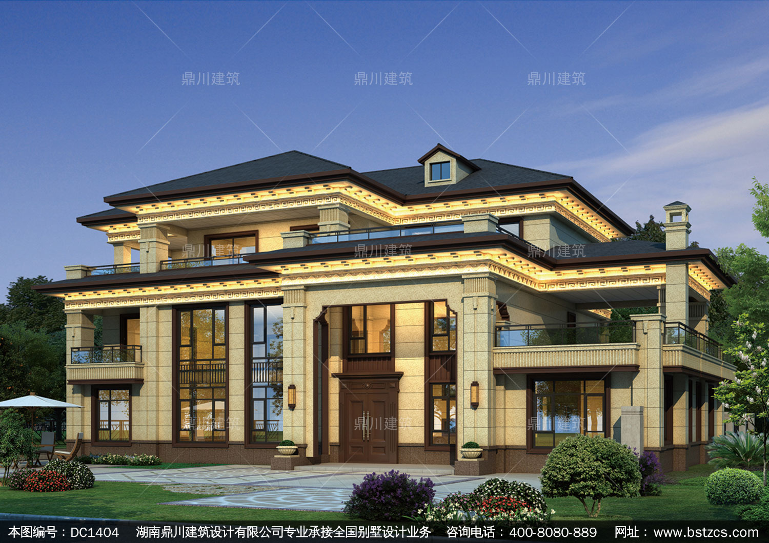 大氣新中式三層別墅效果圖及施工圖紙_農村自建別墅設計,鼎川建