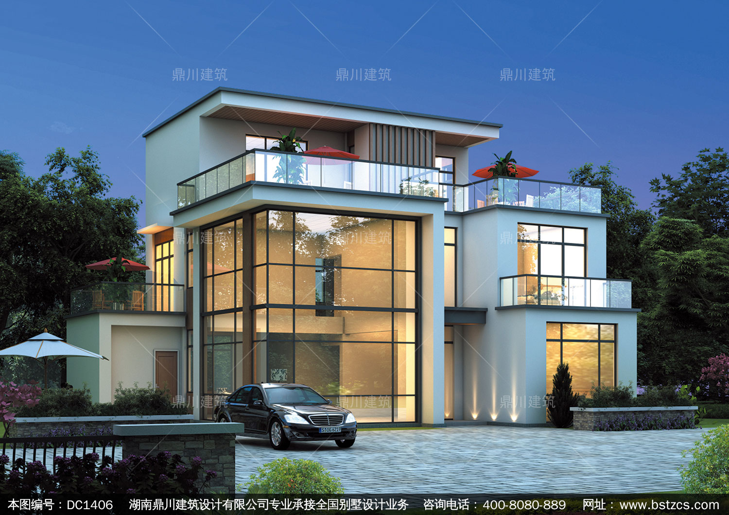 現代三層別墅效果圖及施工圖紙_農村自建別墅設計,鼎川建筑
