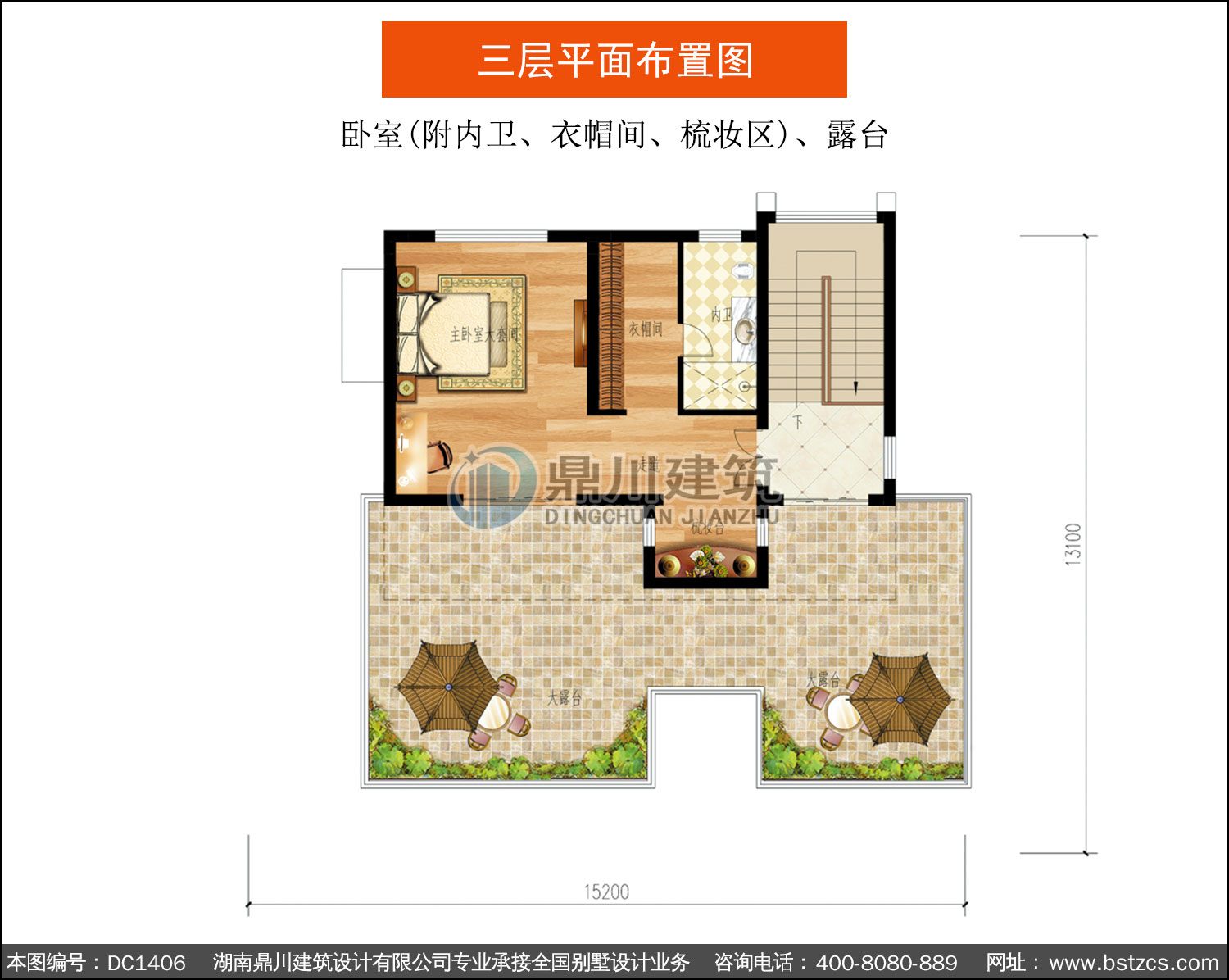 | 三 層: | 臥室(附內衛、衣帽間、梳妝區)、露臺 | |||