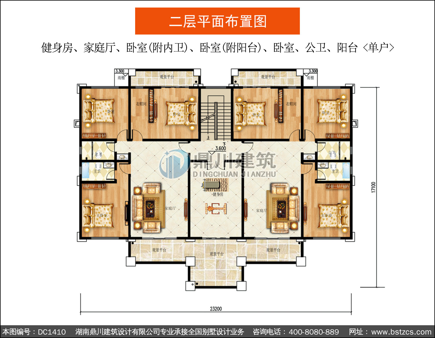 | 二 層: | 健身房、家庭廳、臥室(附內(nèi)衛(wèi))、臥室(附陽臺(tái))、臥室、公衛(wèi)、陽臺(tái) <單戶> | |||