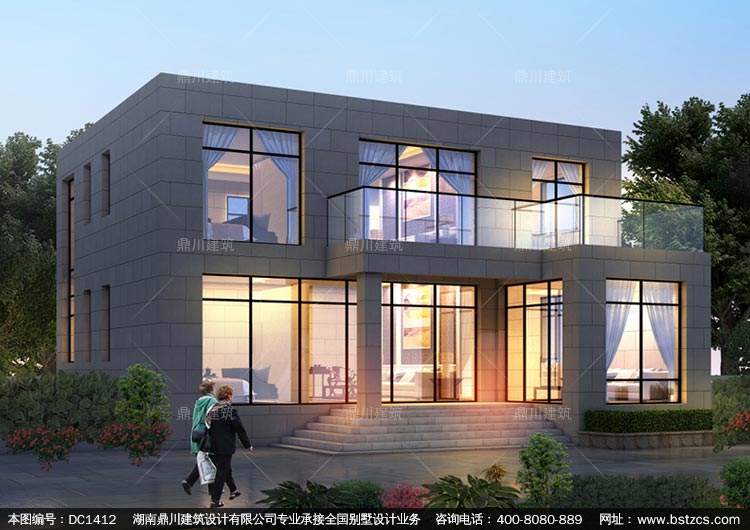 現代二層別墅效果圖及施工圖紙_農村自建別墅設計,鼎川建筑