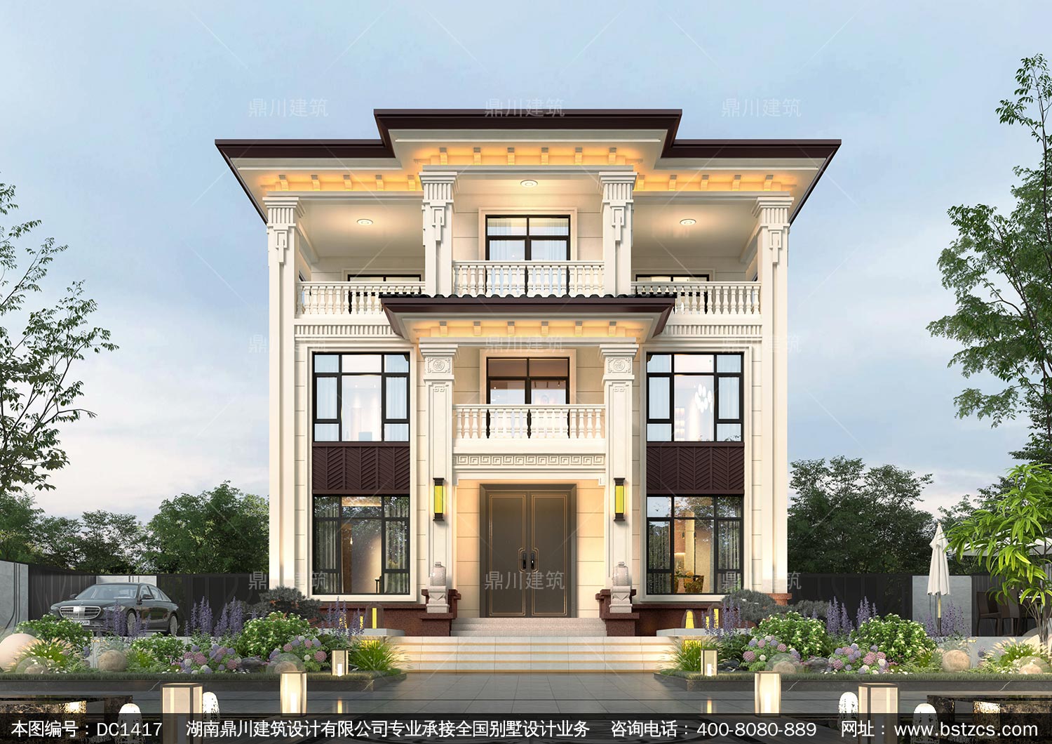新中式三層別墅效果圖及施工圖紙_農村自建別墅設計,鼎川建筑