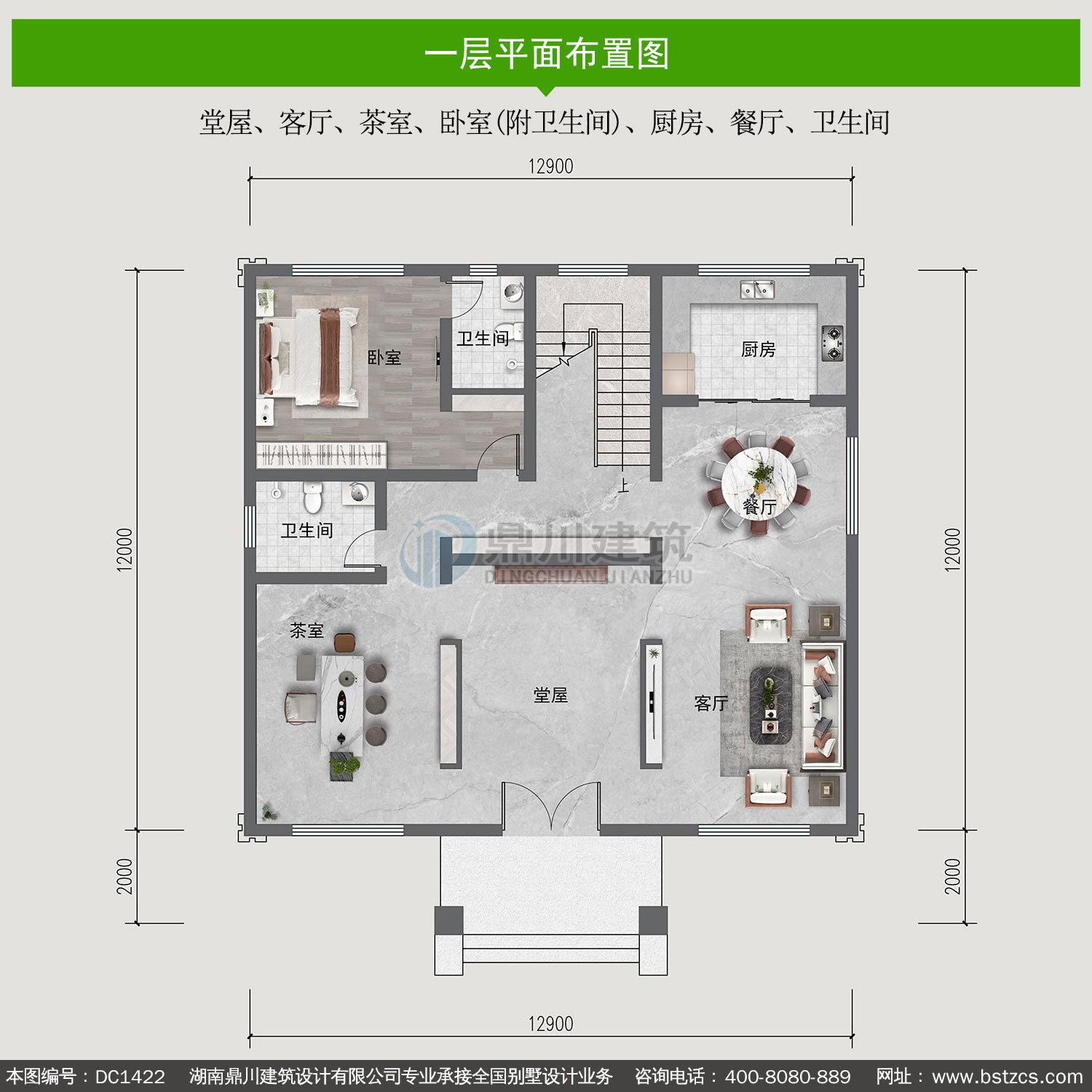| 一 層: | 堂屋、客廳、茶室、臥室(附衛生間)、廚房、餐廳、衛生間 | |||