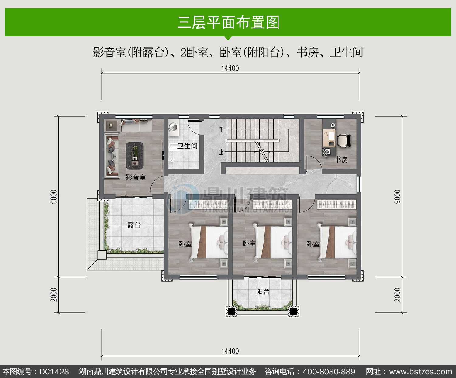 | 三 層: | 影音室(附露臺)、2臥室、臥室(附陽臺)、書房、衛(wèi)生間 | |||