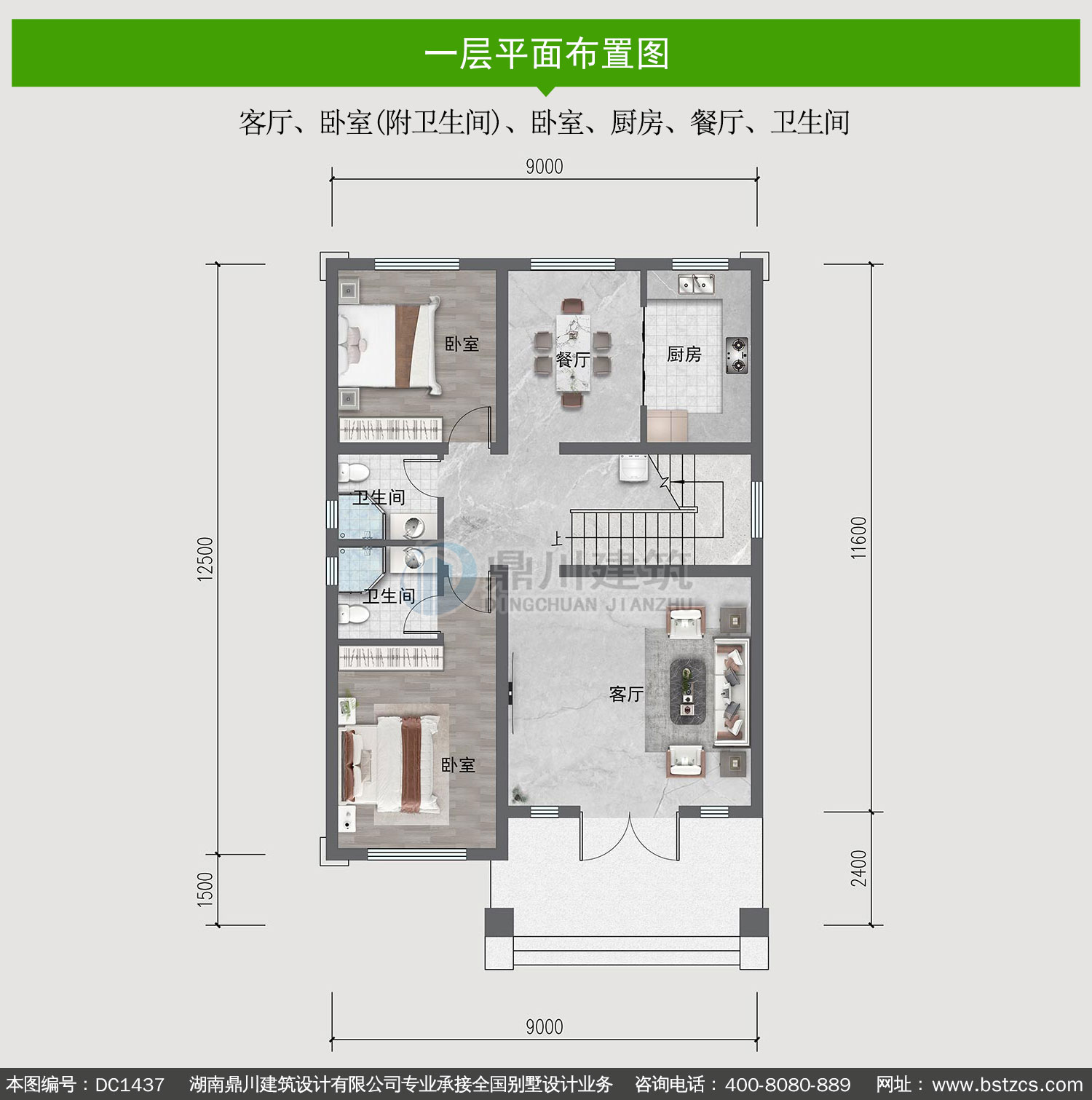 | 一 層: | 客廳、臥室(附衛(wèi)生間)、臥室、廚房、餐廳、衛(wèi)生間 | |||