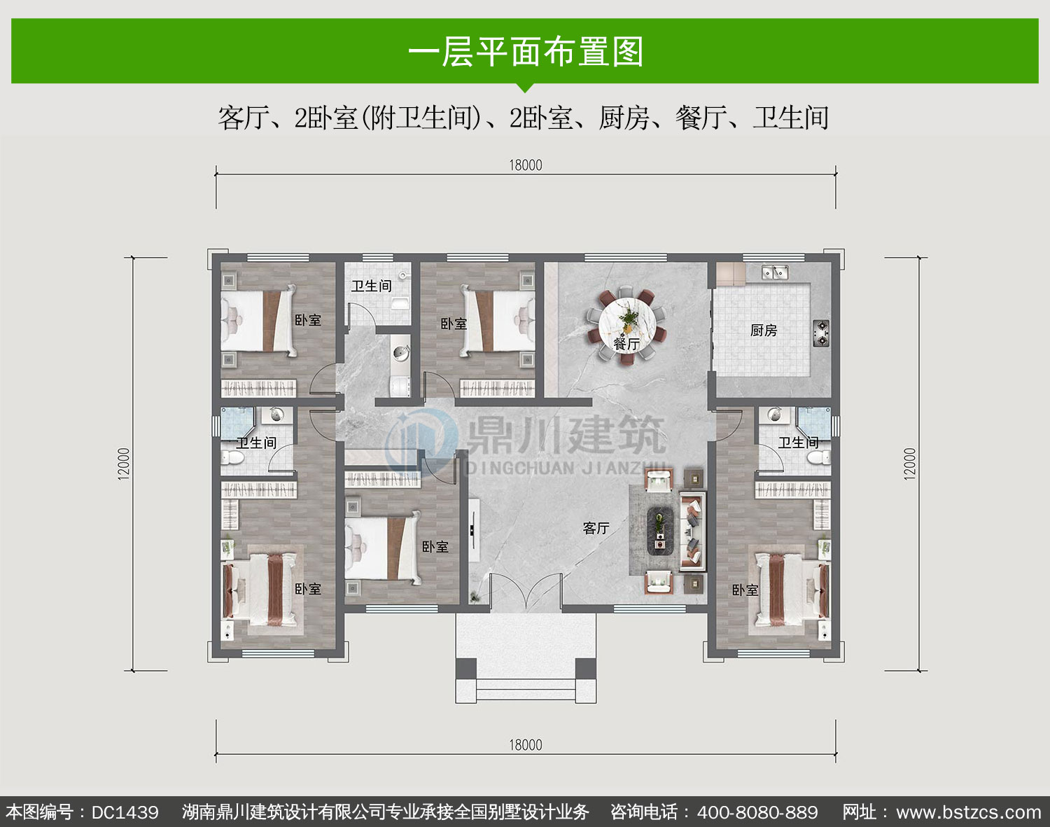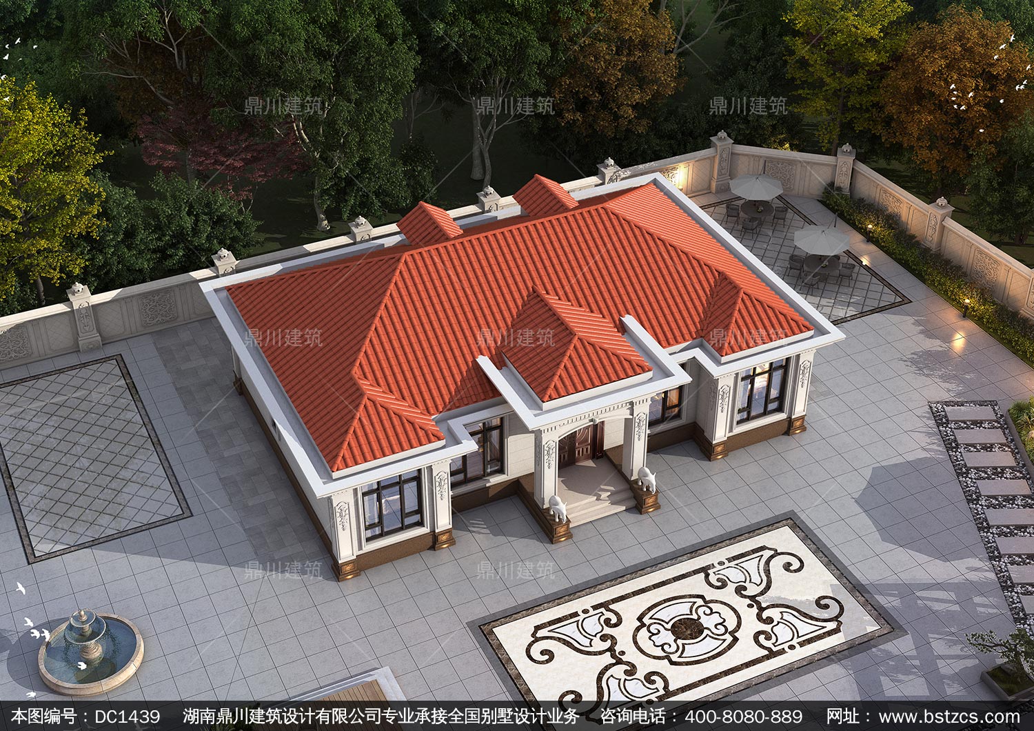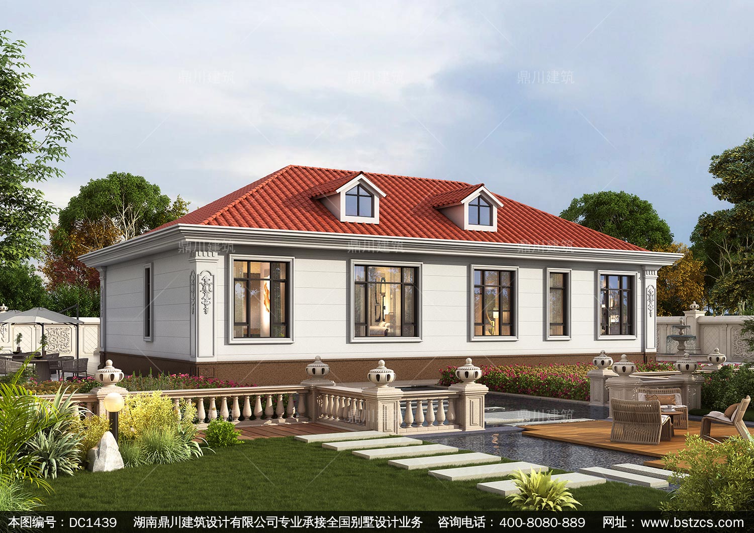 大氣歐式一層別墅設計圖紙及效果圖_農村自建房設計,鼎川建筑