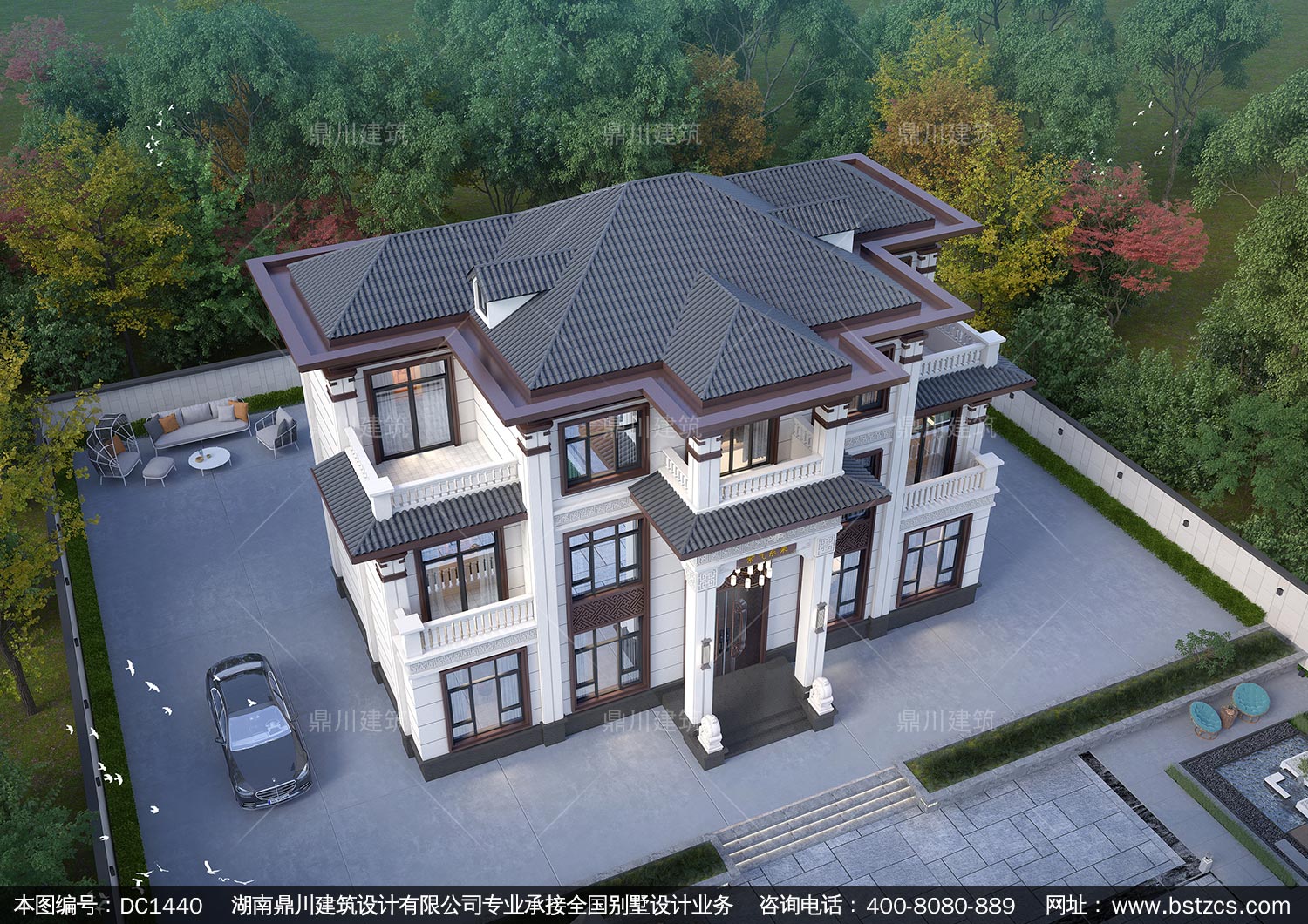 大氣新中式三層別墅設計圖紙及效果圖_農村自建房設計,鼎川建筑