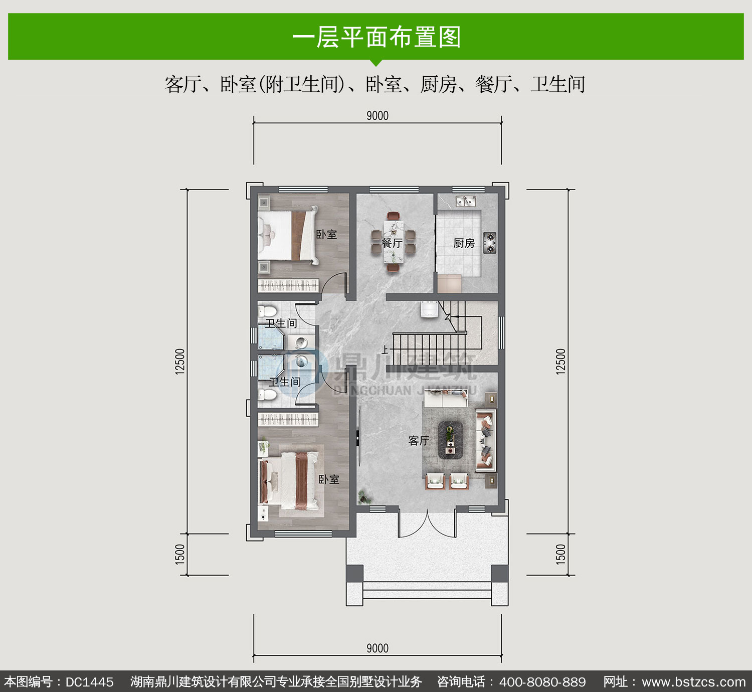 | 一 層: | 客廳、臥室(附衛(wèi)生間)、臥室、廚房、餐廳、衛(wèi)生間 | |||