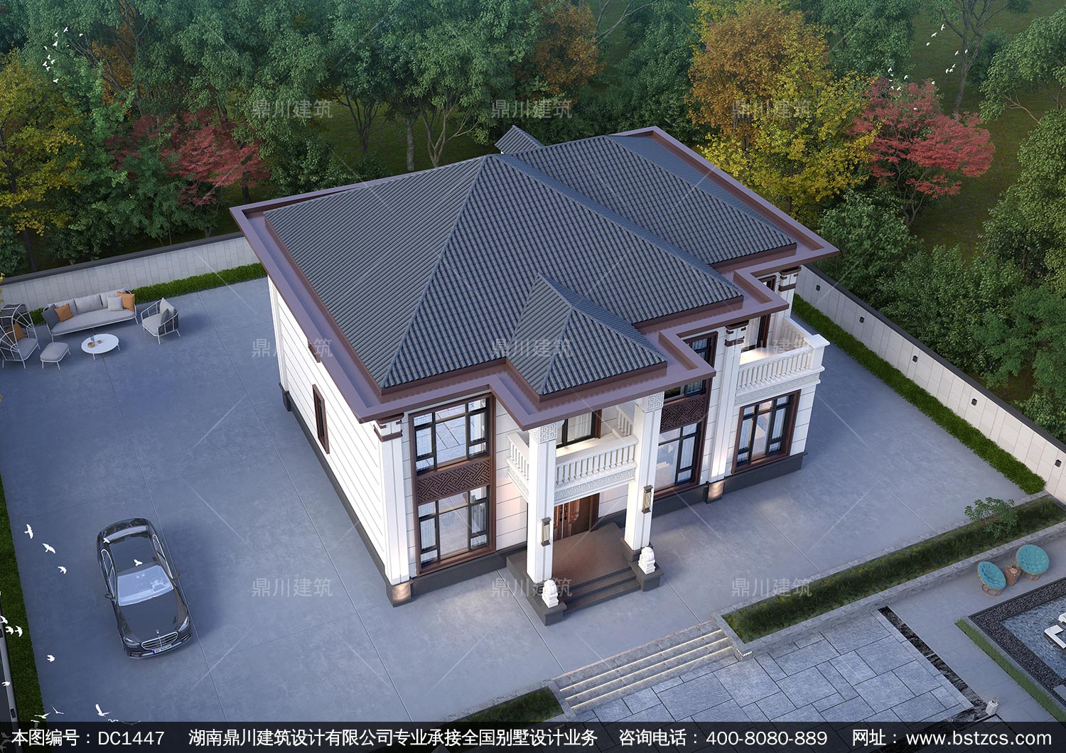 大氣新中式二層別墅設(shè)計圖紙及效果圖_農(nóng)村自建房設(shè)計,鼎川建筑