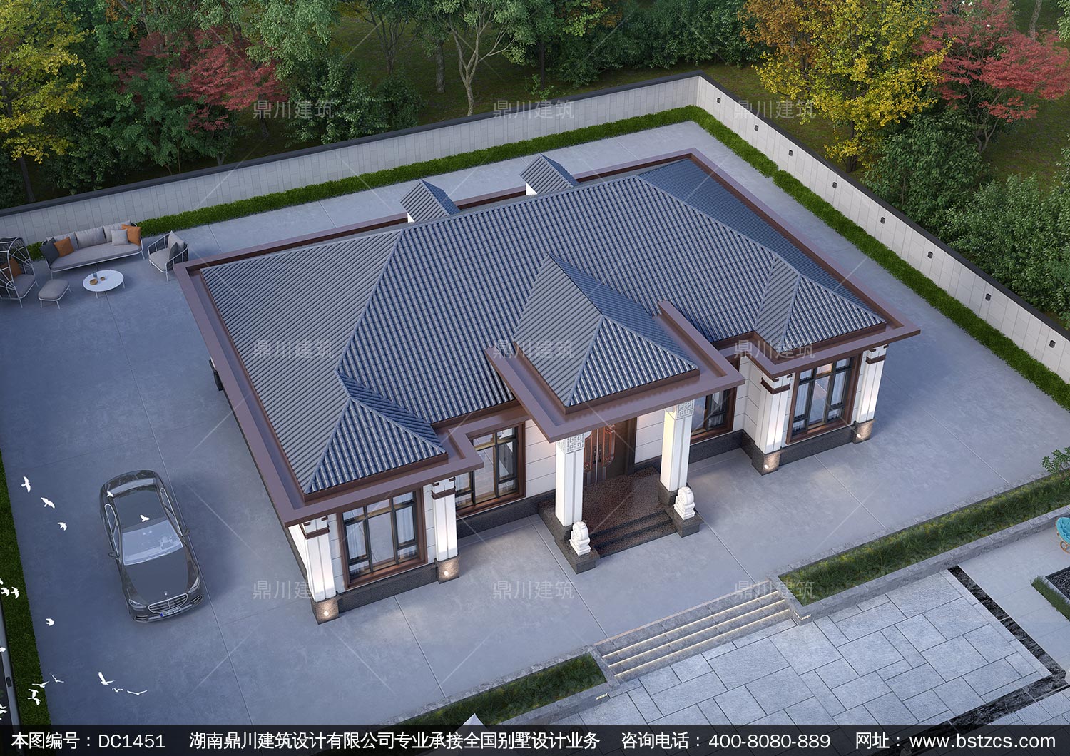 大氣新中式一層別墅設計圖紙及效果圖_農村自建房設計,鼎川建筑