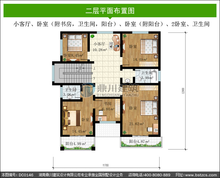 | 二 層: | 小客廳、臥室(附書房,衛生間,陽臺)、臥室(附陽臺)、2臥室、衛生間 | |||