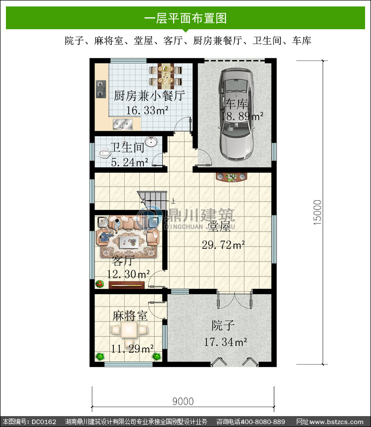 | 一 層: | 院子、麻將室、堂屋、客廳、廚房兼餐廳、衛生間、車庫 | |||