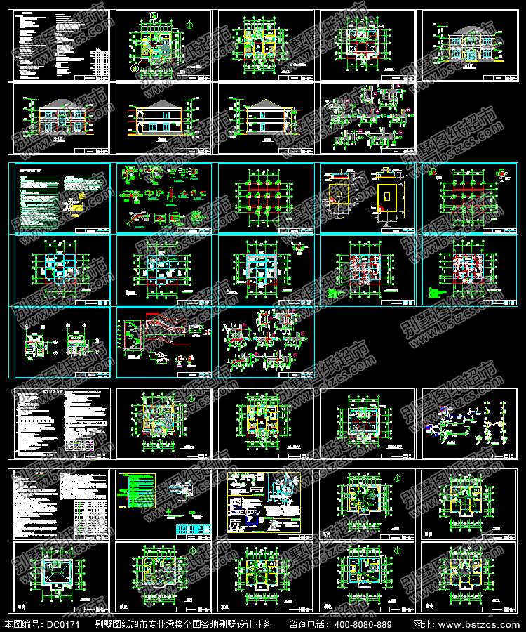 | 建 筑 圖: | 工程做法、門窗表、一層平面圖、二層平面圖、閣樓層平面圖、正立面圖、背立面圖、左立面圖、右立面圖、大樣圖 | |||