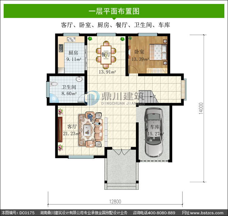 | 一 層: | 客廳、臥室、廚房、餐廳、衛生間、車庫 | |||