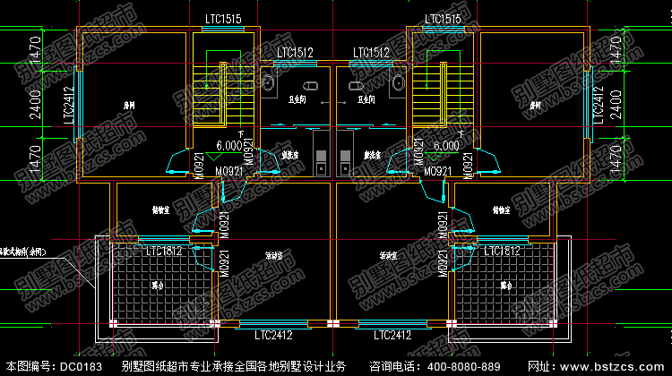 農村二層半帶露臺雙拼房屋設計全套圖紙_別墅設計圖紙,農村自建