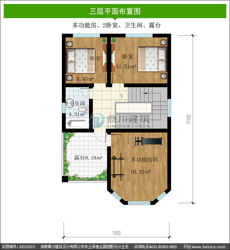 | 編號: DC0203 | 層數: 三層 | 結構形式: 磚混結構 | 主體造價: 20-25萬 |