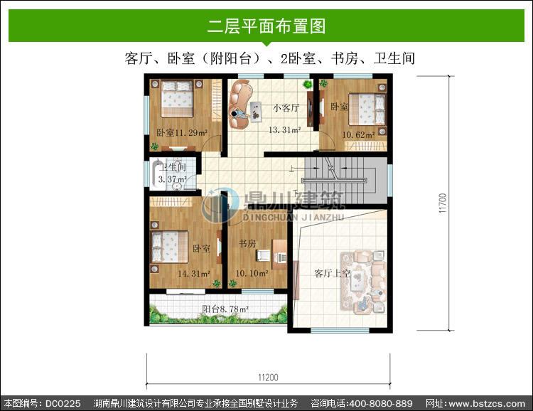 | 二 層: | 客廳、臥室(附陽臺(tái))、2臥室、書房、衛(wèi)生間 | |||