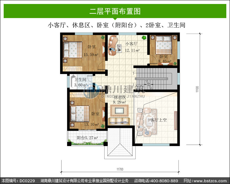 | 二 層: | 小客廳、休息區(qū)、臥室(附陽臺)、2臥室、衛(wèi)生間 | |||