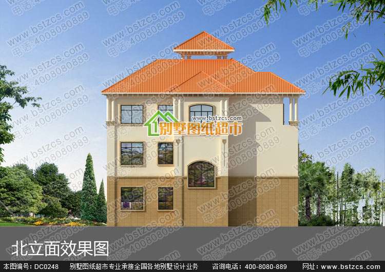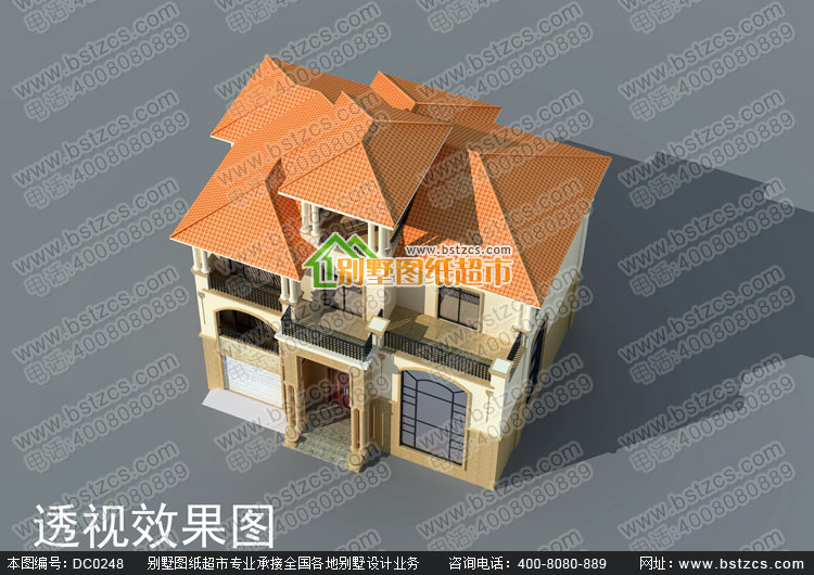 漂亮的三層復式帶車庫歐式別墅施工圖及效果圖_別墅圖紙超市,三層歐式別墅設計圖紙