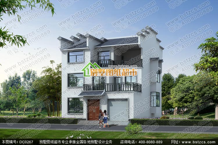 三層帶車(chē)庫(kù)徽派自建房設(shè)計(jì)圖紙_別墅圖紙超市,農(nóng)村房屋設(shè)計(jì)圖