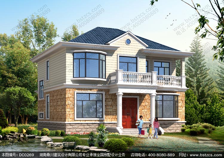 二層帶陽臺農村小別墅效果圖及施工圖_農村自建房設計圖,鼎川別