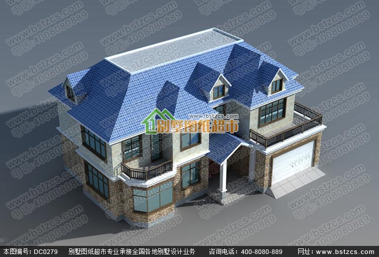 獨特二層帶車庫別墅設計圖紙及效果圖_別墅設計圖紙,農村房屋設