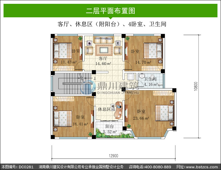 | 二 層: | 客廳、休息區(qū)(附陽臺)、4臥室、衛(wèi)生間 | |||