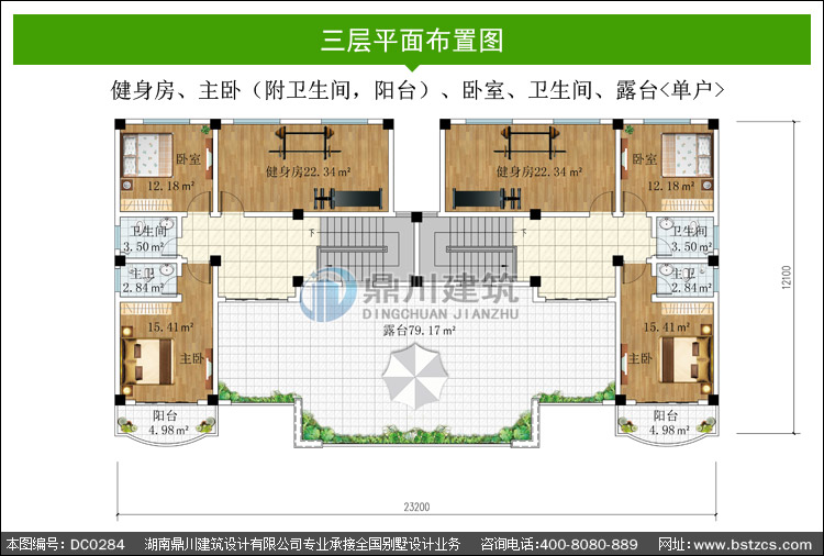 | 三 層: | 健身房、主臥(附衛生間,陽臺)、臥室、衛生間、露臺 | |||