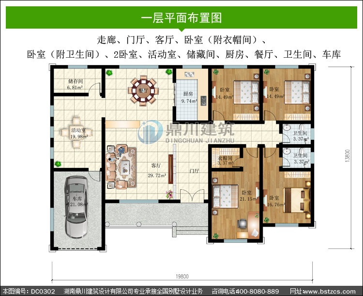 | 編號: DC0302 | 層數: 一層 | 結構形式: 磚混結構 | 主體造價: 30-40萬 |